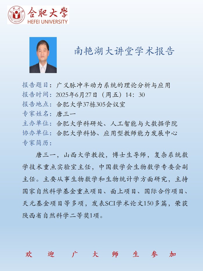 【南艳湖大讲堂】广义脉冲半动力系统的理论分析与应用